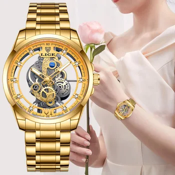 LIGE 2023 New Gold Watch Women Watches Ladies All Steel Skeleton Design Women’s Bracelet Watches Female Clock Relogio Feminino