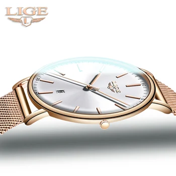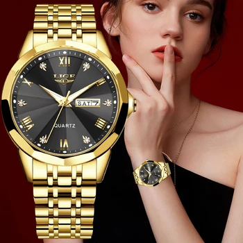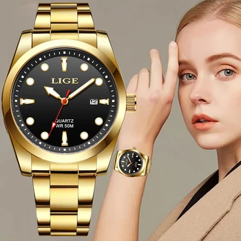 LIGE Fashion Women Watches Ladies Top Brand luxury Waterproof Gold Quartz Watch Women Stainless Steel Date Wear Gift Clock 2021