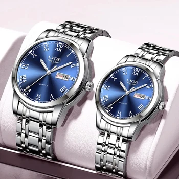 LIGE Couple Watches Set Original for Men Business Women Fashion Casual Stainless Steel Waterproof Quartz Ladies Wristwatch + Box