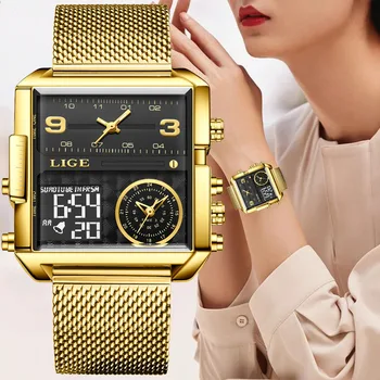 LIGE Gold Watch Ladies Square Women Watches Top Brand Luxury Golden Quartz Stainless Steel Waterproof Wrist Watch Reloj Mujer
