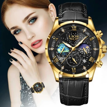 LIGE New Gold Watch Women Quartz Watches Lady Waterproof Wristwatch Womens Bracelet Female Clock Relogio Feminino Montre Femme