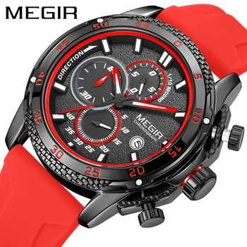 MEGIR New Sport Silicone Strap Red Quartz Watch for Men Waterproof Chronograph Mens Watches Top Brand Luxury Relogio Masculino