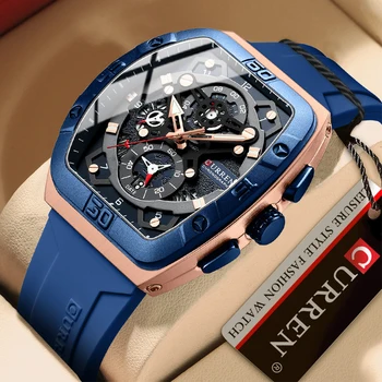 CURREN Brand Fashion Male Wristwatch Luminous Unique Square Design Luxury Quartz Sports Tape Watches Men Waterproof with Date