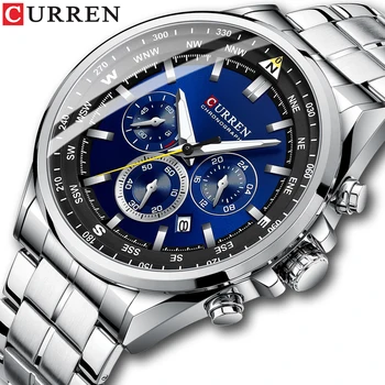 CURREN Men Quartz Wristwatches Casual Sports Stainless Steel Watches for Male Chronograph and Luminous hands Clock