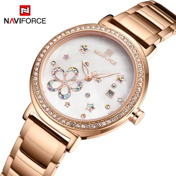 NAVIFORCE Ladies Luxury Women Stainless Steel Watches Fashion Casual Female Quartz Wristwatches Life Waterproof Relogio Feminino