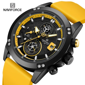 NAVIFORCE Luxury Watches for Men Fashion Silicone Band Military Waterproof Sport Chronograph Quartz WristWatch Fashion With Date