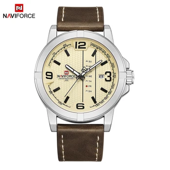 NAVIFORCE Men’s Casual Sport Military Quartz Calendar Wrist Watch for Men Leather Water Resistant Clock Relogio Masculino NF8023