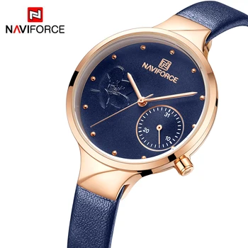 NAVIFORCE Women Luxury Fashion Quartz Watch Lady Leather Watchband High Quality Casual Waterproof Wristwatch Gift for Wife