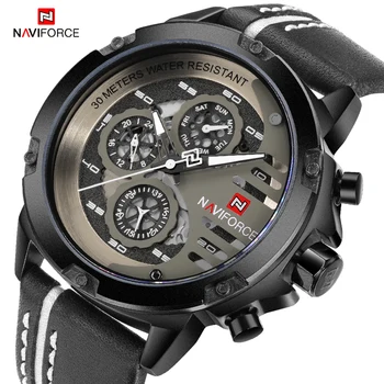 New NAVIFORCE Watches for Men Leather Waterproof Military Sport Quartz Chronograph Dual Display Clock
