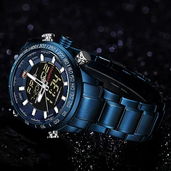 Relogio Masculino Military Men Sport Watches Mens NAVIFORCE Brand LED Digital Watch Male Clock Full Steel Quartz Men Watch 9093
