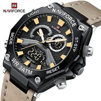 New Trends NAVIFORCE Brand Wrist Watches for Man Genuine Leather Waterproof Quartz Clock Dual Display Digital Sports Men’s Watch