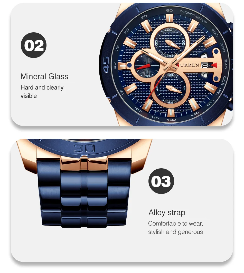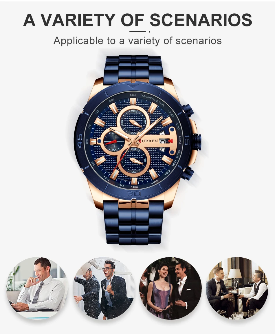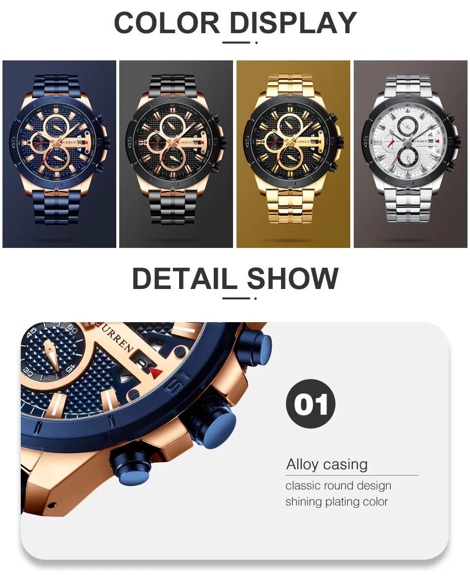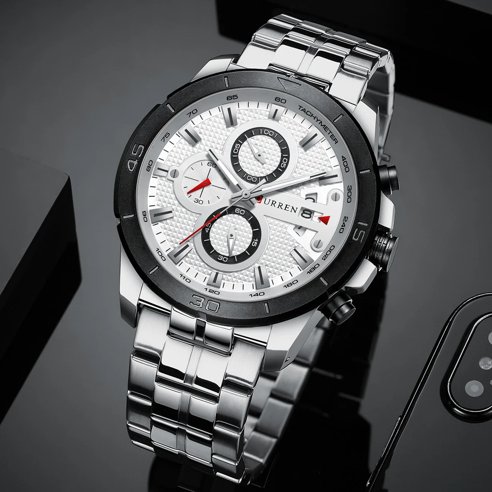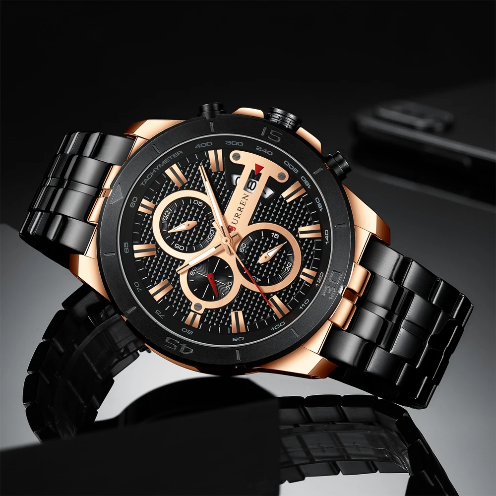 CURREN Luxury Brand Stainless Steel Sports Watch Men New Chronograph Wristwatches Fashion Casual Date Quartz Clock Mens WatchesÂ