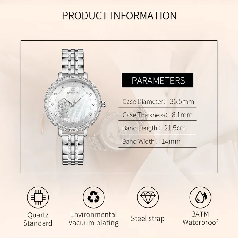 NAVIFORCE Luxury Ladies Watch Women Waterproof Rose Gold Steel Strap Women Watches Top Brand Bracelet Clocks Relogio Feminino