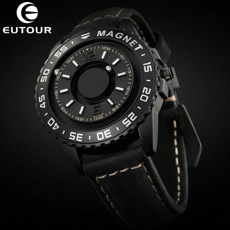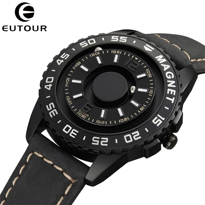 Eutour Fashion Watch Men Watches Magnetic Magnet Dial Turntable Beads Metal Ball Male Watches Creative Man Reloj TODO Saat Clock