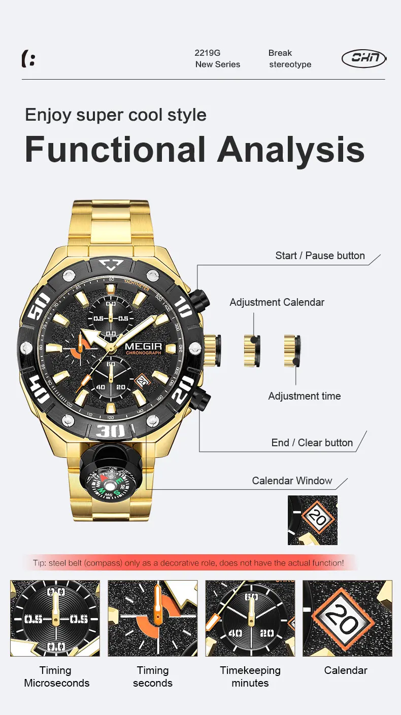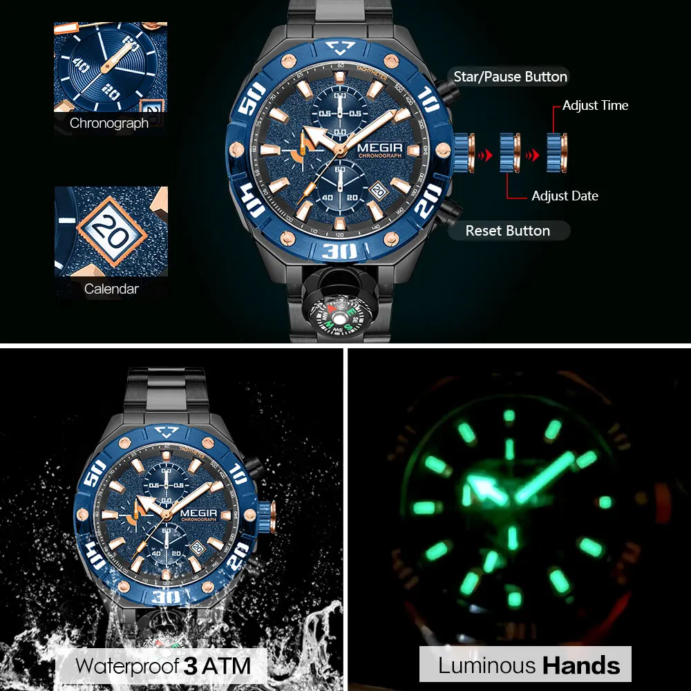 Features: 3 atm waterproof, Luminous Hands, Calendar, Hour, Minute, Second