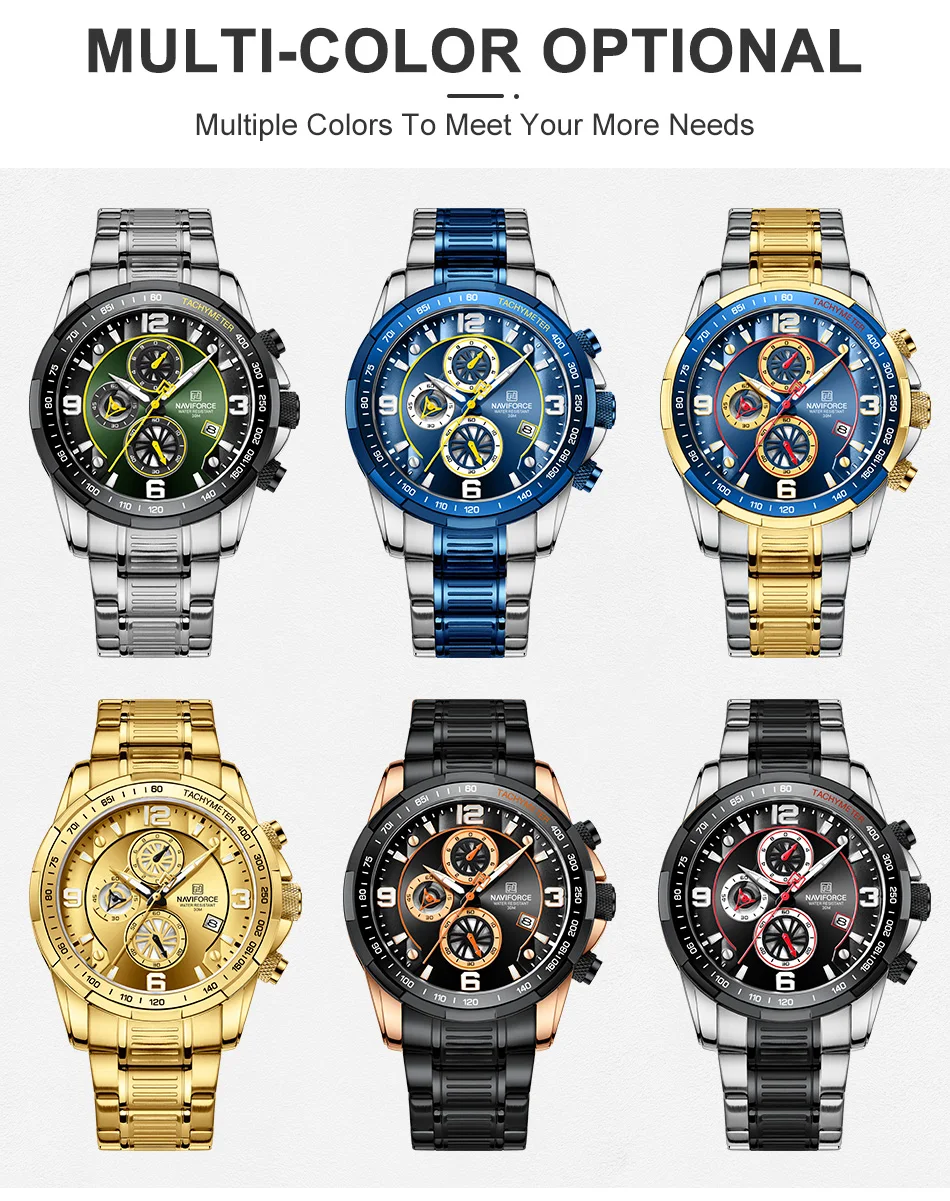 Men Watch NAVIFORCE Top Luxury Brand Stainless Steel Luminous Wristwatch Waterproof Quartz Men Clock Luxury Fashion Watch Men
