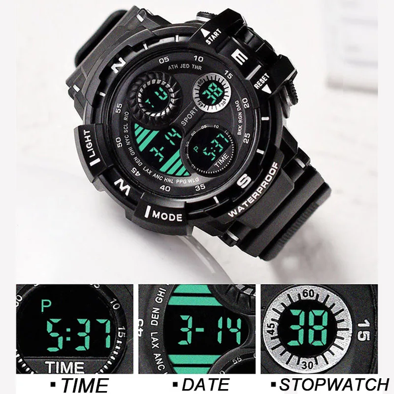 Men Sport Watch Multifunction Military Sports Watch Waterproof Luminous LED Digital Kids Watch Big Dial Student Electronic Watch