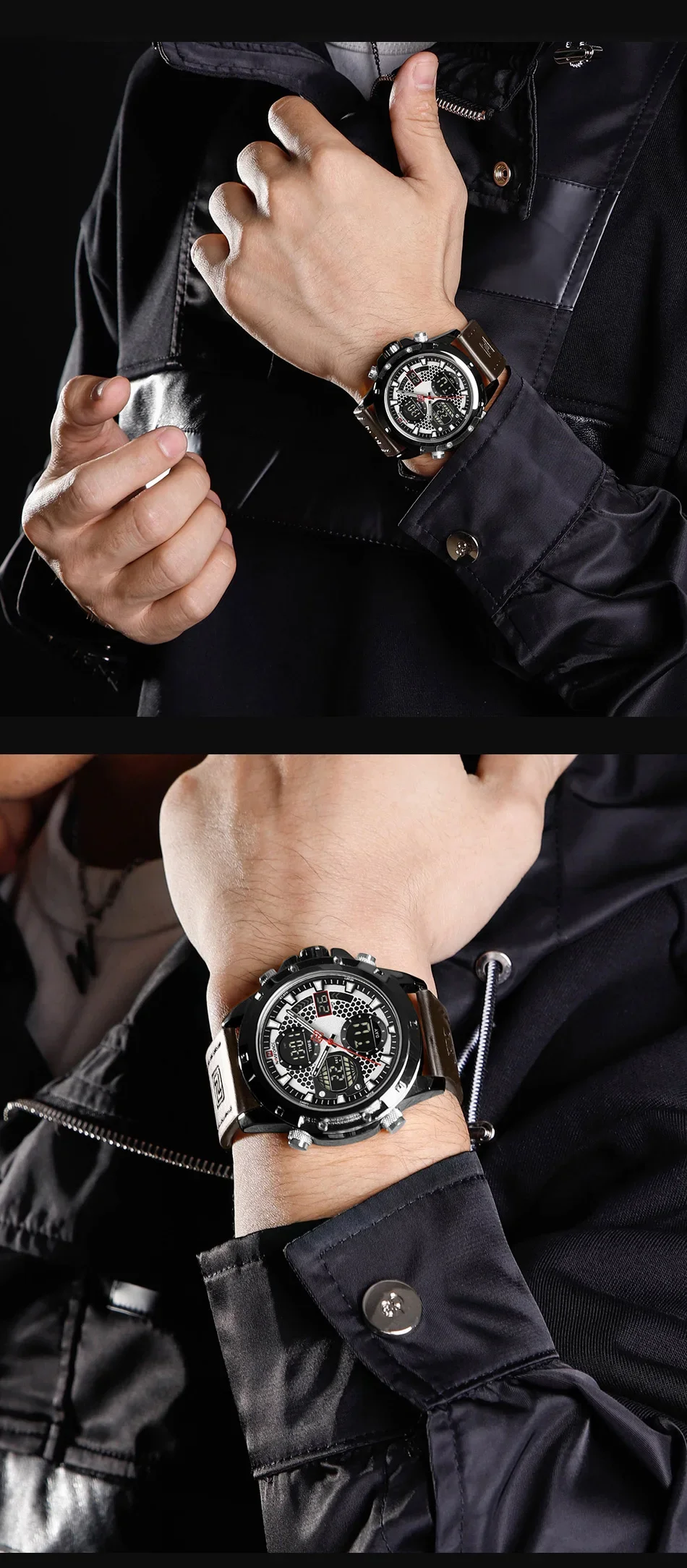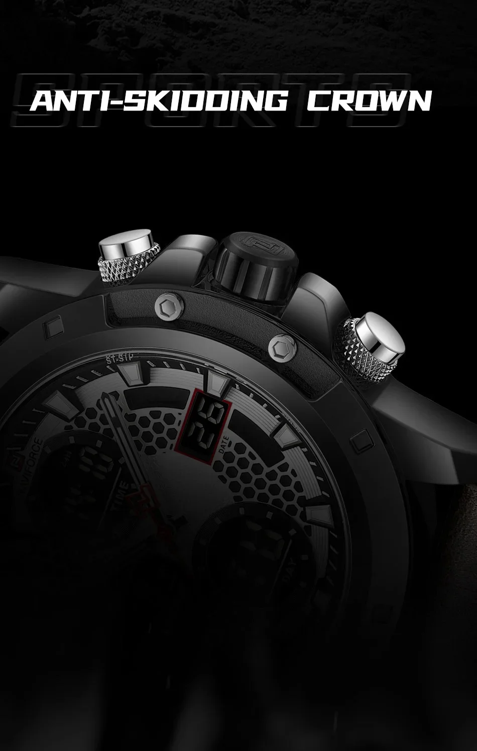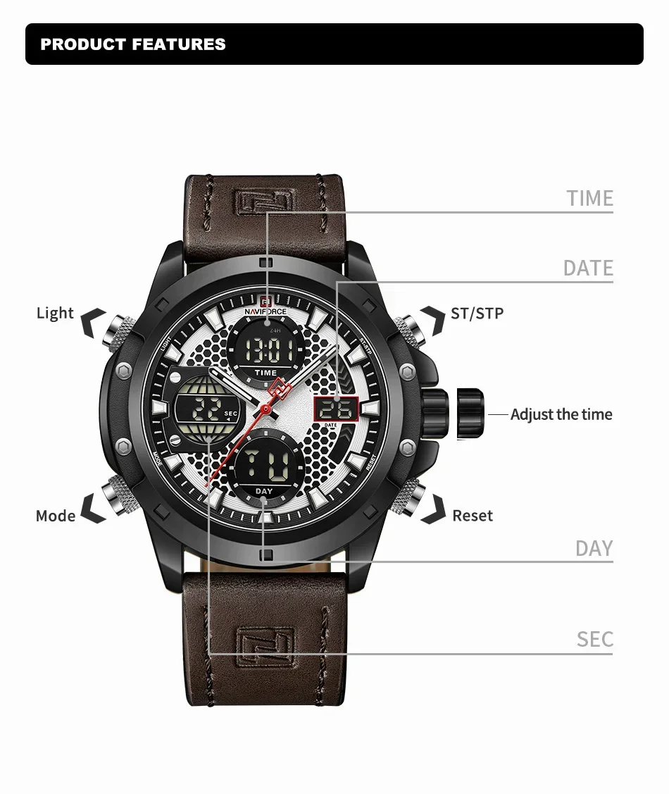 Feature: 30M Water Resistant, Luminous; Date Day Dual Time Display; alarm Chronograph; Scratch-resistant;