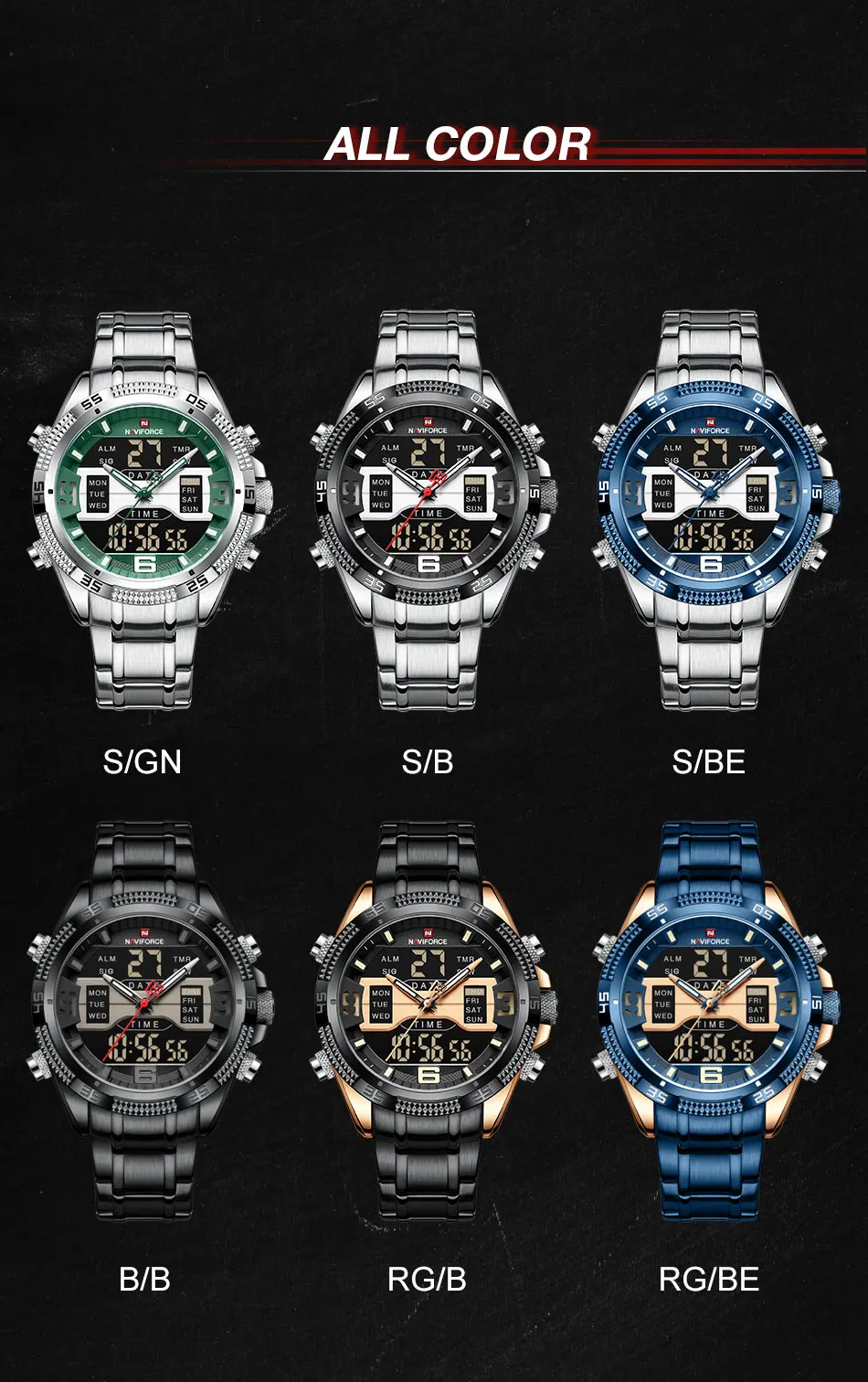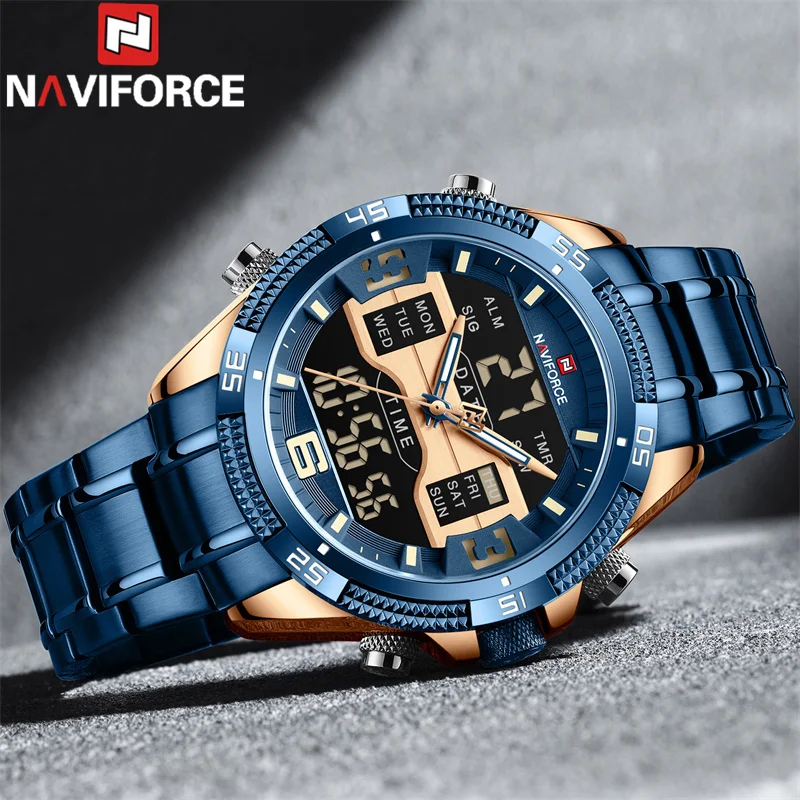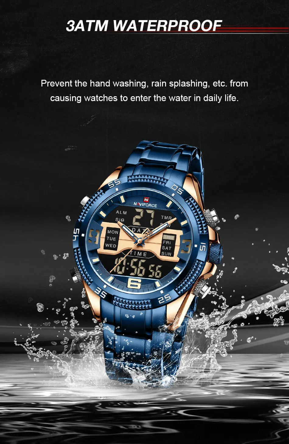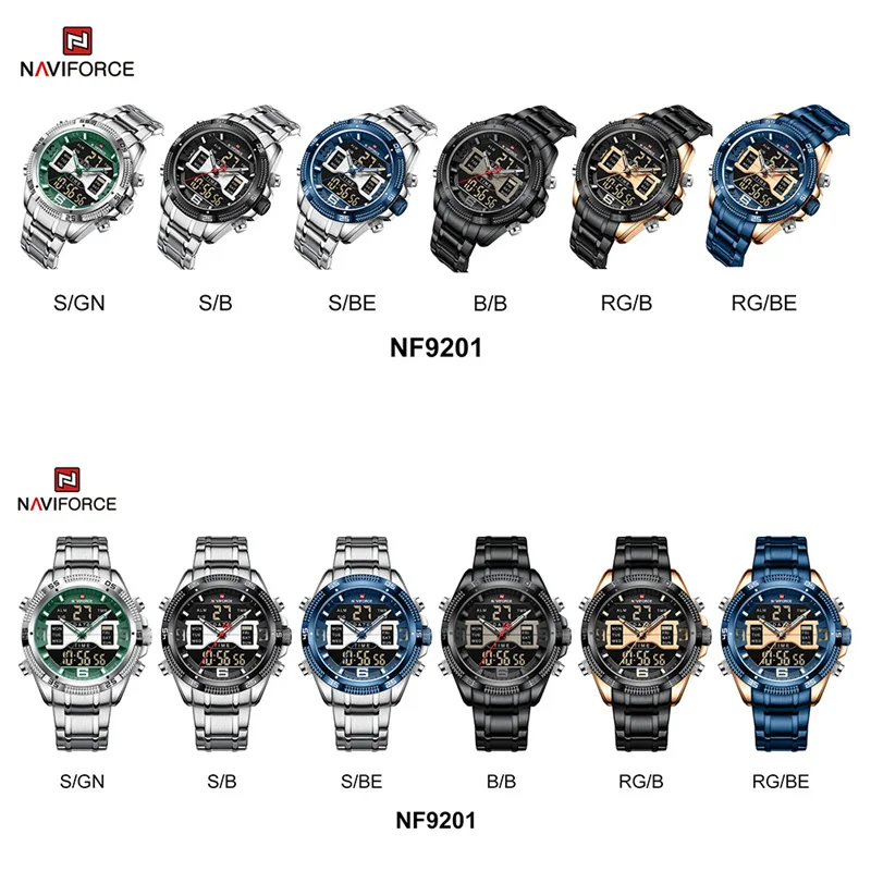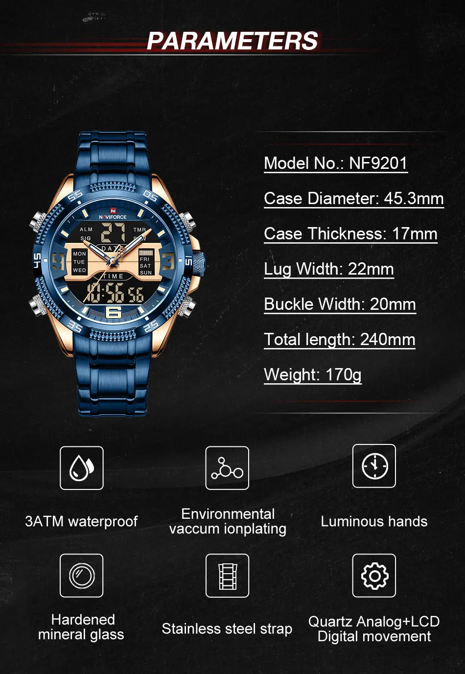 NAVIFORCE Watch Men Top Brand Luxury Stainless Steel Sport Male Clock Digital Quartz Original Military Army Man Wristwatch 9201