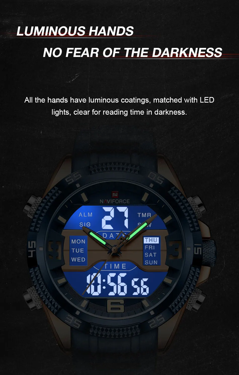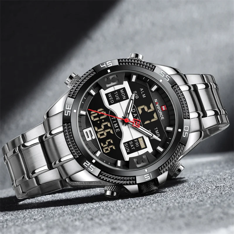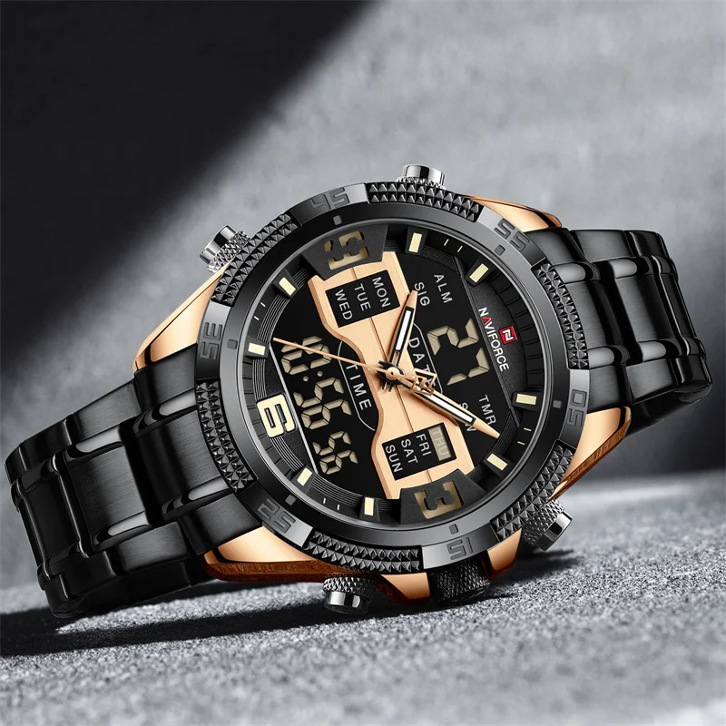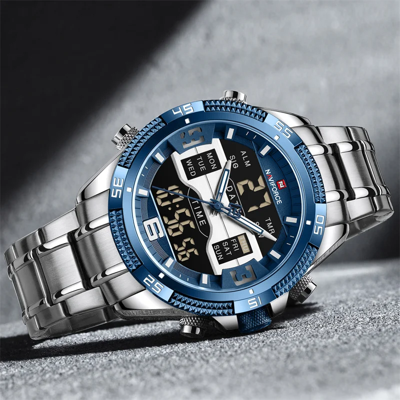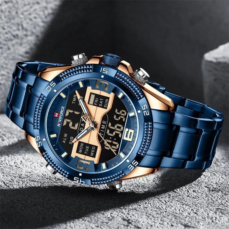 NAVIFORCE Watch Men Top Brand Luxury Stainless Steel Sport Male Clock Digital Quartz Original Military Army Man Wristwatch 9201