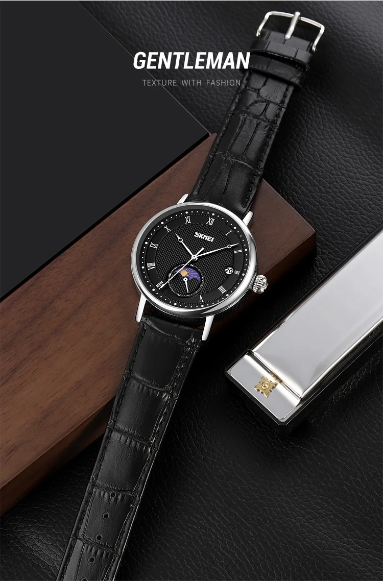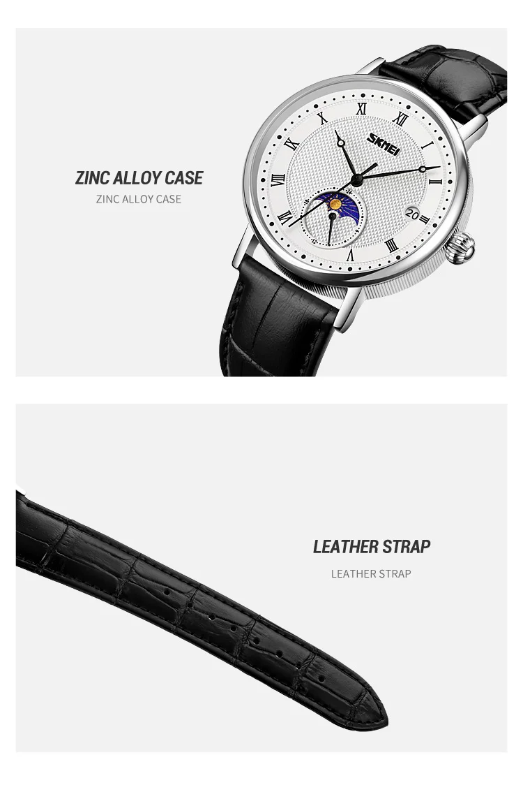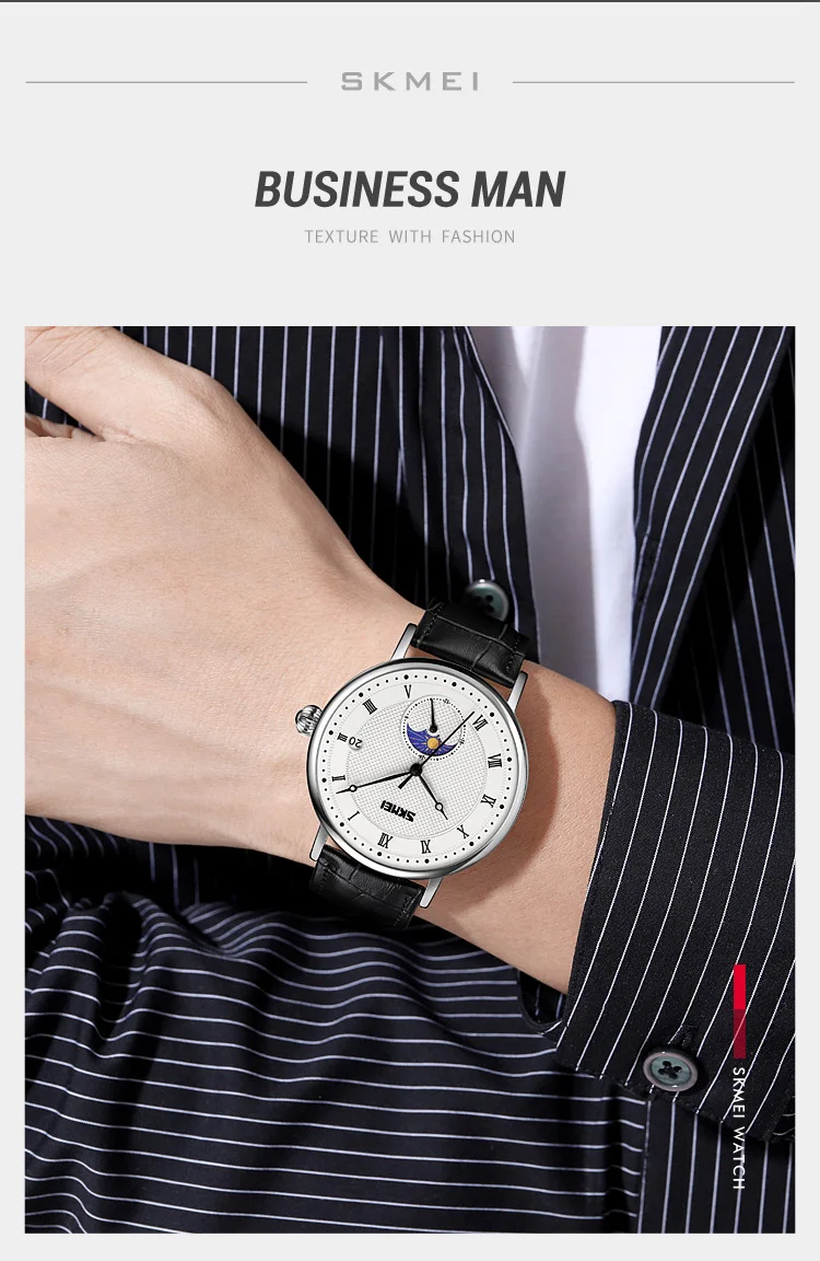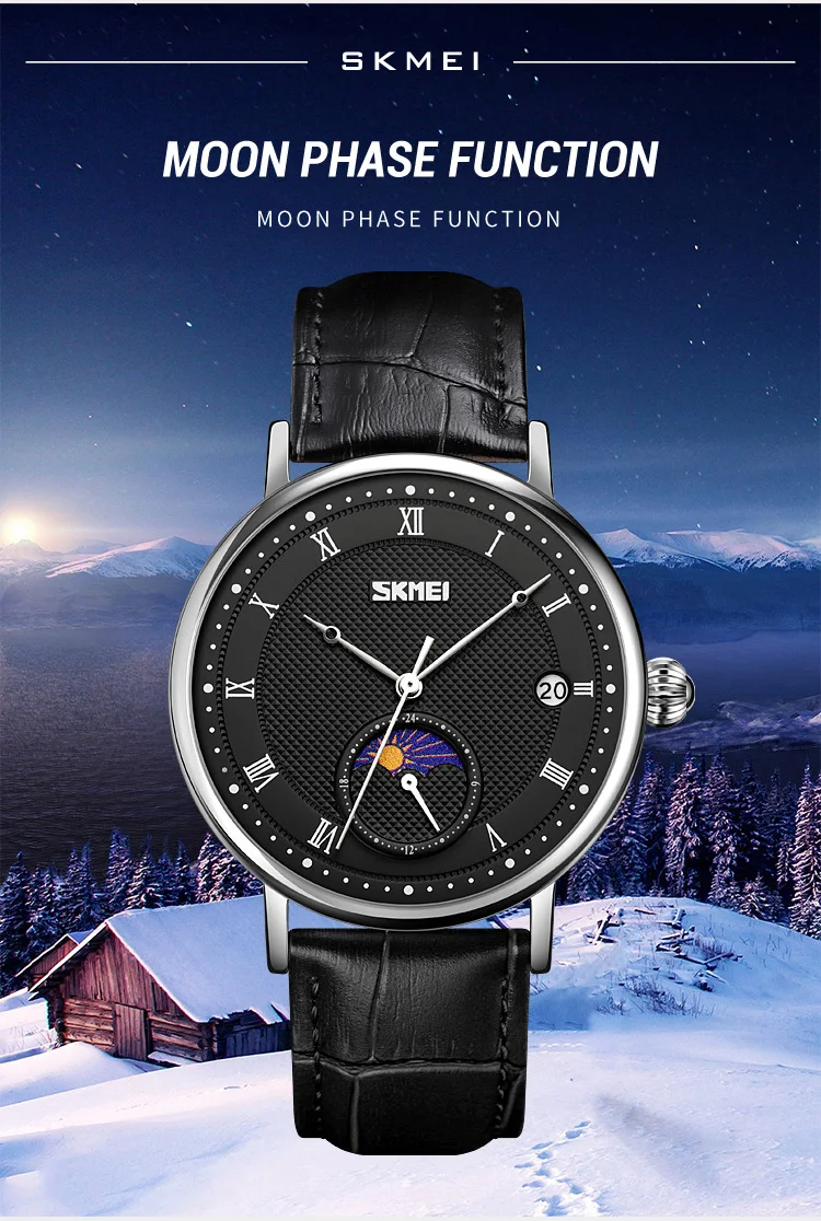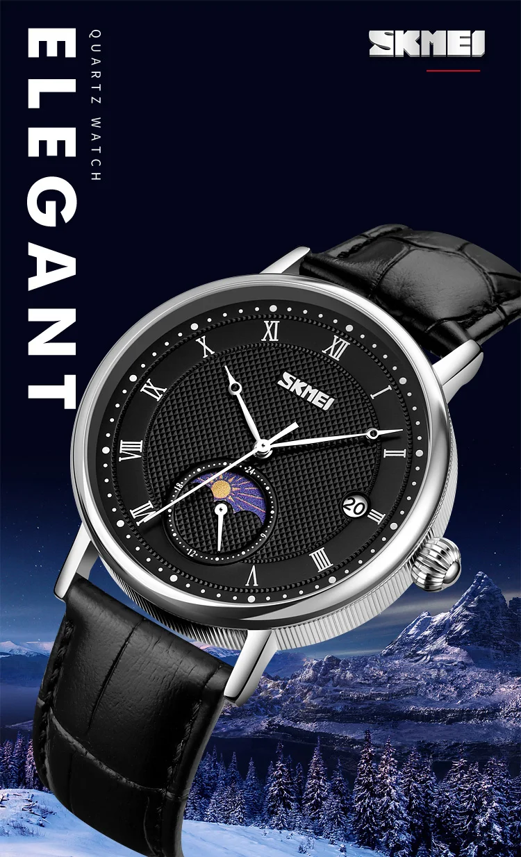 SKMEI 9308 Men Quartz Watch New Hour Markers Sun Moon Stars Date Calendar Waterproof Men’s Wrist Watches Male Clock reloj hombre
