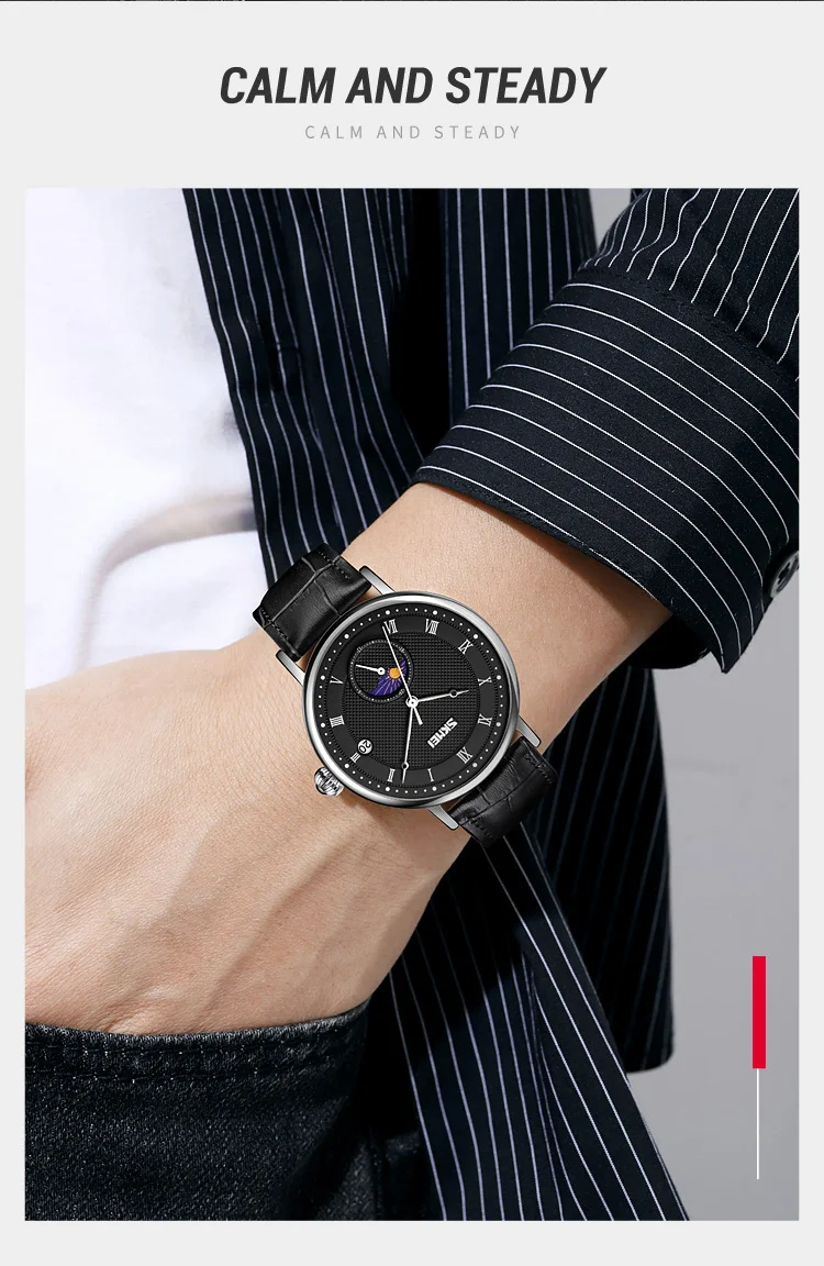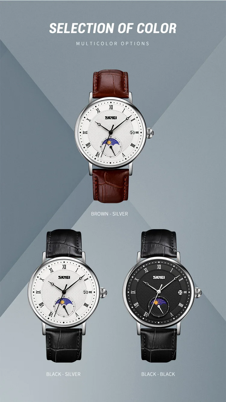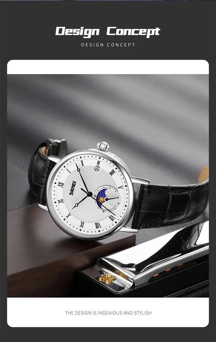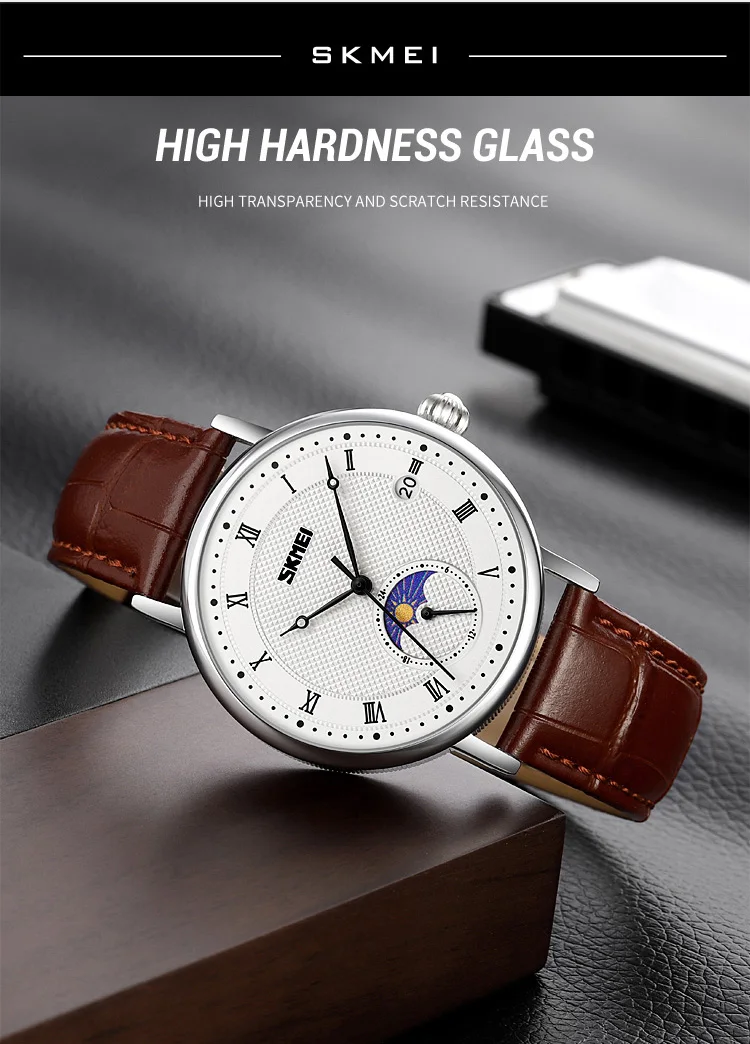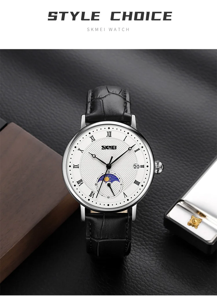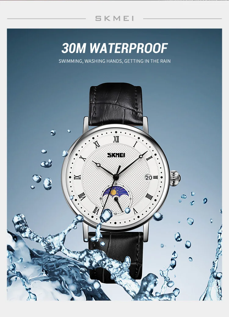 SKMEI 9308 Men Quartz Watch New Hour Markers Sun Moon Stars Date Calendar Waterproof Men’s Wrist Watches Male Clock reloj hombre