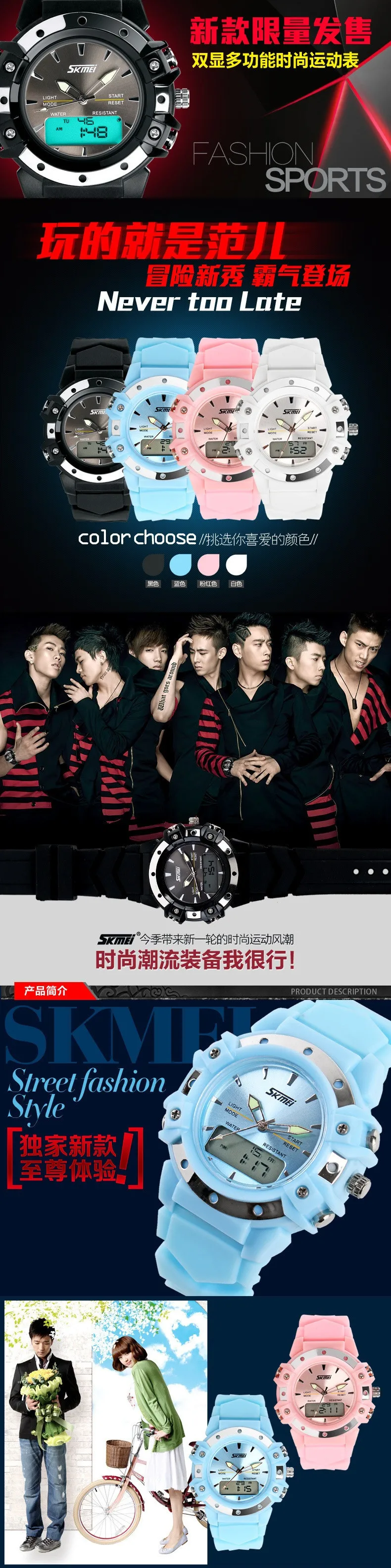 Skmei Dual Time casual digital women/men dress sports jelly military watches Christmas Gift 3AT waterproof Silicon wristwatches