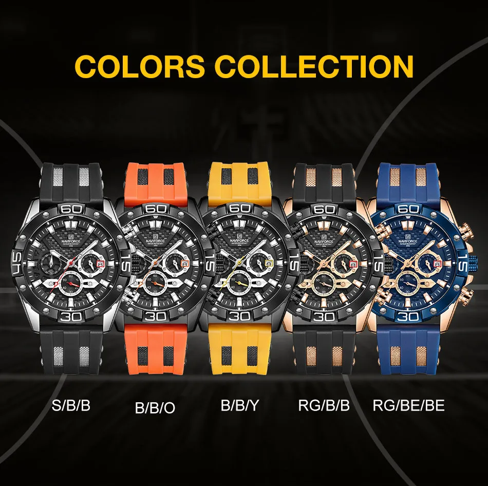 Top Brand NAVIFORCE Luxury Men Quartz Watch Fashion Casual Complete Calendar Clock Waterproof Silicone Wristband Sports Watches
