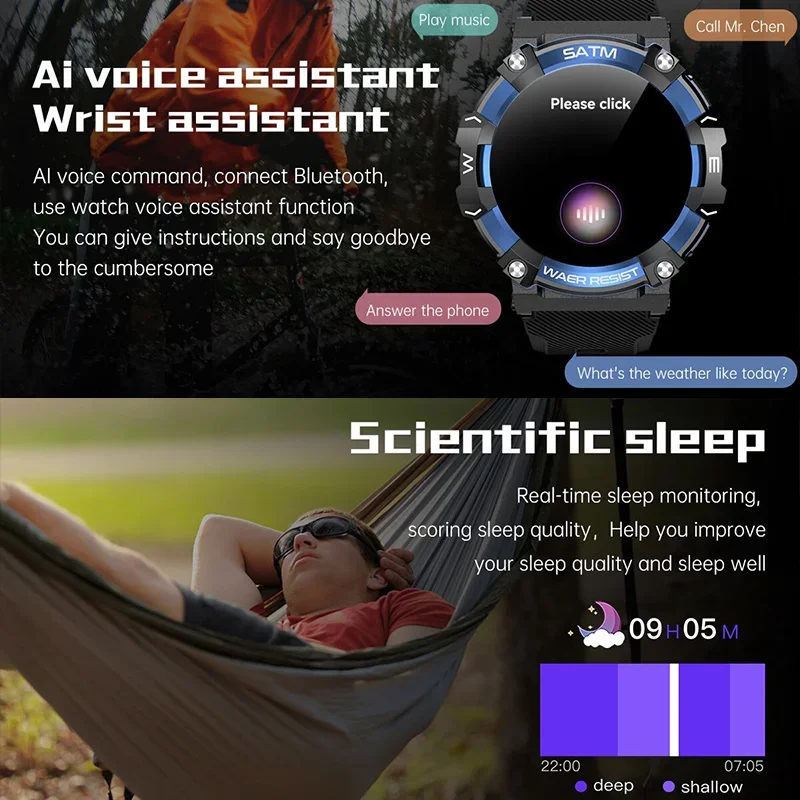 Voice assistant, 6 sets of theme styles, custom watch face, step counting, brightness adjustment, multi-sport mode, sleep detection,
