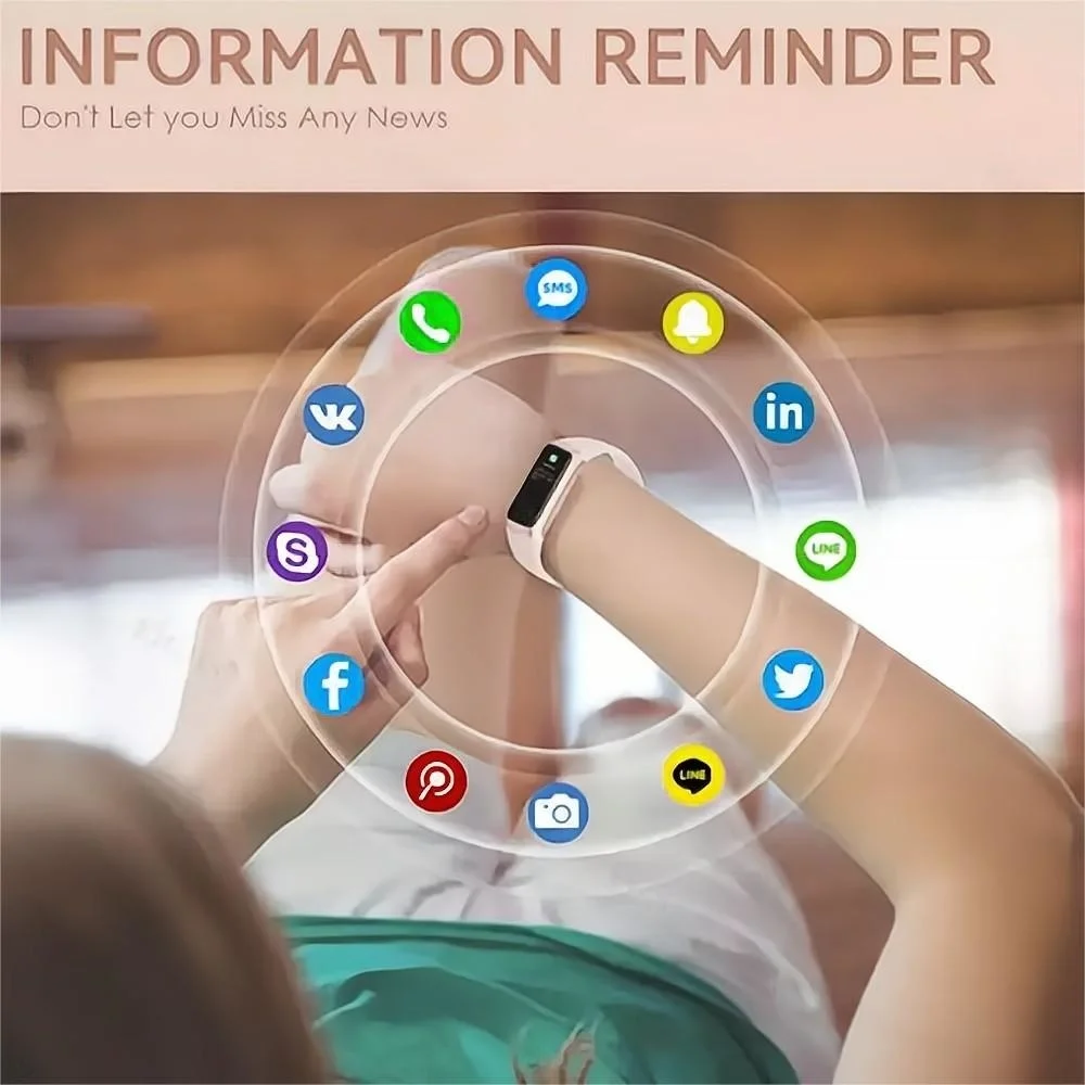 • Message reminder:Incoming call, email, SMS, QQ, WeChat, WhatsApp, Facebook, Twitter, Line, Skype, Instagram, LinkedIn, VK,